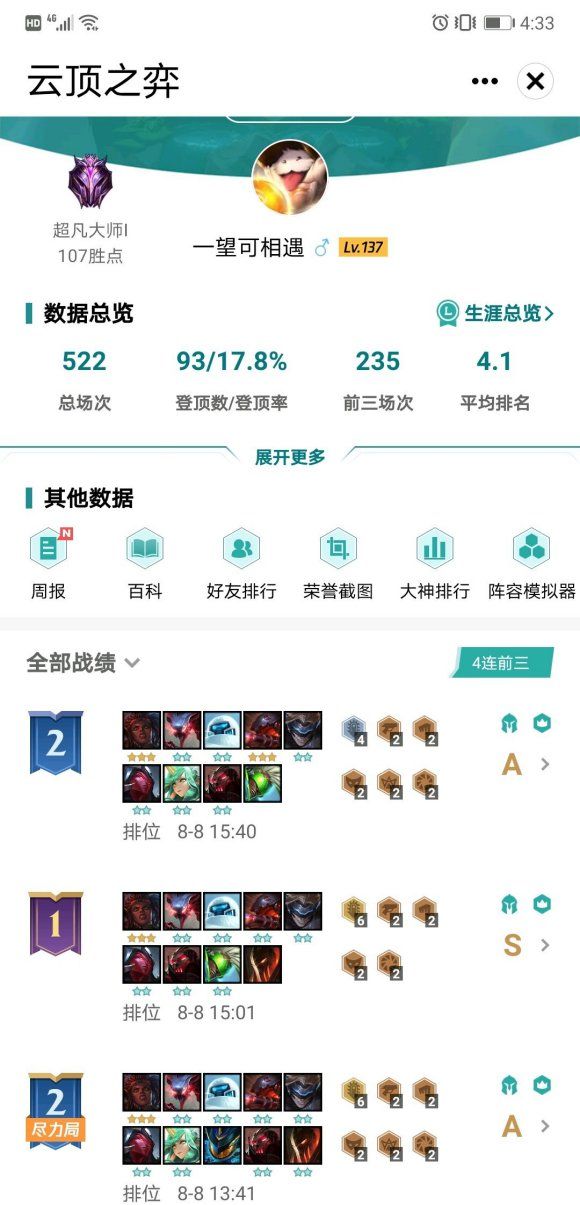 4阶段4战地2秘术还是很顶的,5阶段没有凑到6战地就基本一直掉血的了所以赌完了就不要贪利息,尽快拉7拉8,双秘术大于双刺客