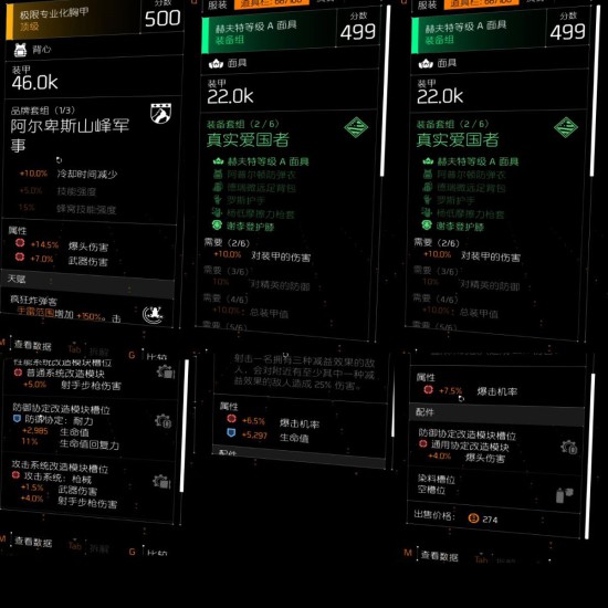 配装方面用的是两件真爱国者、三件阿尔拉蒂、一件、一件阿尔卑斯衣服,下面是各部位的参考。
