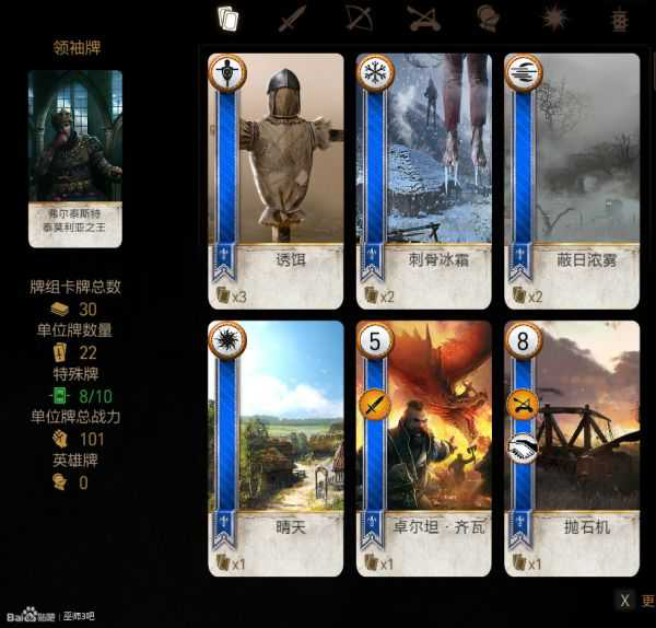 一些昆特牌的基本玩法我就不详细说了 自己摸索一下都能看明白的,或者找找网上的说明也可以,毕竟看懂这游戏我觉得还是挺简单的,主要更新前期的收集流程,像昆特牌、骗牌、卡点、天气牌使用的这些技巧具体问题具体分析,放截图方便理解,下面直接从白果园开始。