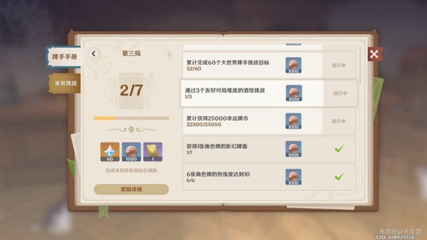 挑战可得:180牌手经验、750幸运牌币、支援卡【璃月港口】一张(好卡);