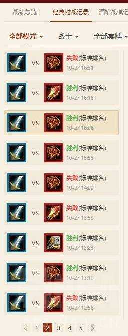 术士现在遇到基本都是轮盘术了,注意留剑刃风暴这种解巨人的解牌就好了,再就是其实后期防战不是很难打,主要找牛头人拿奥丁,还有锻造10费刀,不过对面如果8费轮盘确实不好处理,只能拼455龙或者王冠,我有一把就是轮盘最后一回合,我场被清了,这个时候脑海里想起铁窗后的朋友,人一定要有梦想,然后王冠出两螺丝,再拍一个,三螺丝赢。