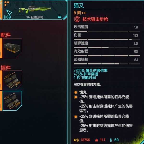至于幽冥犬猫又,可以装5阶饿鬼和两个凿壁穿心,就是一把秒充+秒穿墙的猫又,同样也没有掩体穿透惩罚,专门用来隔墙狙击,不过没有奇美拉插件伤害会低不少。