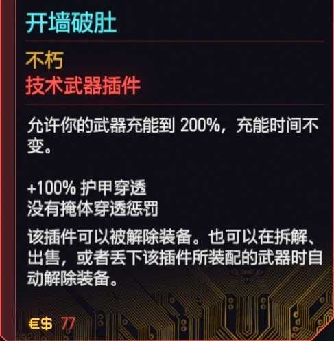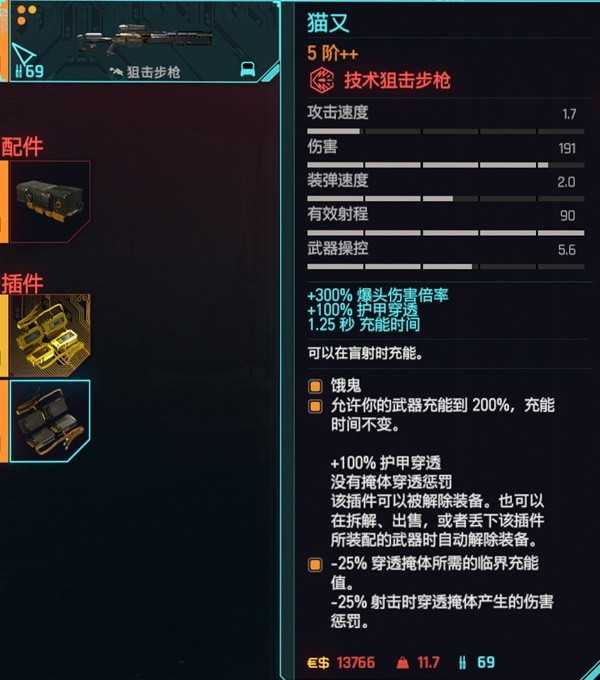 至于剩下的一个插件,可以带凿壁穿心,配合专长电闪雷鸣只需要蓄力50%多点就可以穿墙不受任何伤害惩罚;或者带众生平等,直接提高20%对精英怪的伤害。由于奇美拉插件是可以自由装卸的,你可以准备两把原版猫又,分别安装凿壁穿心/众生平等。