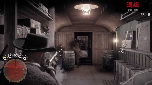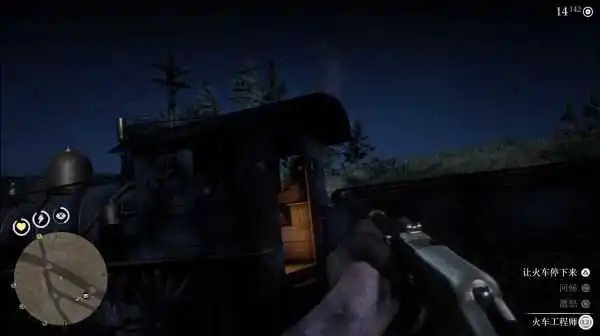 这时你可以看到火车司机在摸鱼吧?注意亚瑟一定要在侧后方,在他能看到的地方掏枪会使司机立刻摇铃报警。