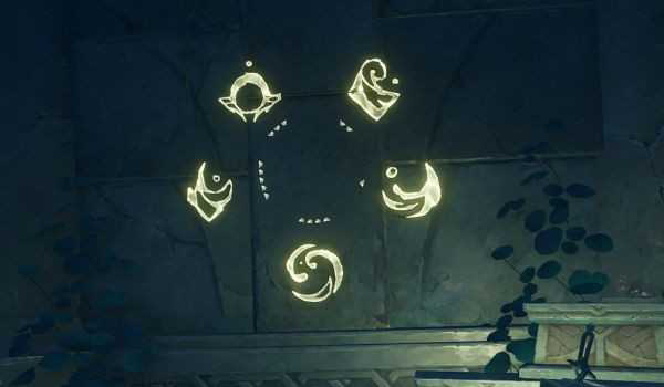 在探索渊下宫的途中,我们会发现5处表示某种顺序的图案(在夜晚模式下可见,且必须触摸图案后,触碰墙壁才有用),我们按着图案上标记的顺序,依次靠近蛇心之地祭坛上的五个墙壁,即可获得宝箱