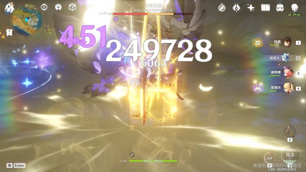 缺点:优菈平A第一段出刀墨迹的不行,并且卡肉造成的问题更加严重,操作不慎有可能连长E都来不及放,可以理解为1的弱化版,之后同类手法不做解释