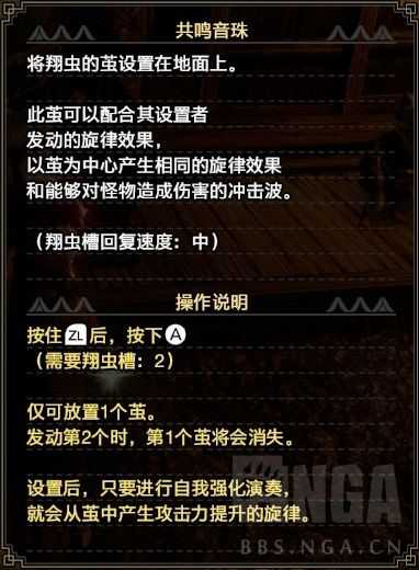 核心交换技共鸣音珠已经解释完,大地一击/击乐的选择全看你个人喜好,这里重点说说演奏模式的选择。绝大多数攻略和solo片都推荐[奏]模式,毕竟那个无敌帧实在是太香,但我在经过数百场奶笛之后,还是换回了传统的[响]模式。主要原因是,一来虽然无敌帧很香,但是野队团战几乎用不到,无回滚已经非常够用。二来翻滚的后摇比ZR短很多,ZR攻防一体,必须保证回避掉攻击的同时打中怪物才有得赚。但团战你经常会处于boss打的到你但你碰不到boss的距离,比如迅龙的二连360。这时候你用ZR回避就是亏爆。第三,也是最关键的,本作ZR的动作值和气炎积累值相当不错,很多爆发都是X/A>ZR打出。如果用[奏]模式,ZR无法演奏,那你在输出时就得面临取舍,是用X>X来抬血量,还是X>ZR打伤害,毕竟后者的回复量只有前者的一半。但如果用[响]模式,你大可以全都要,无脑X>ZR伤害高回复足。