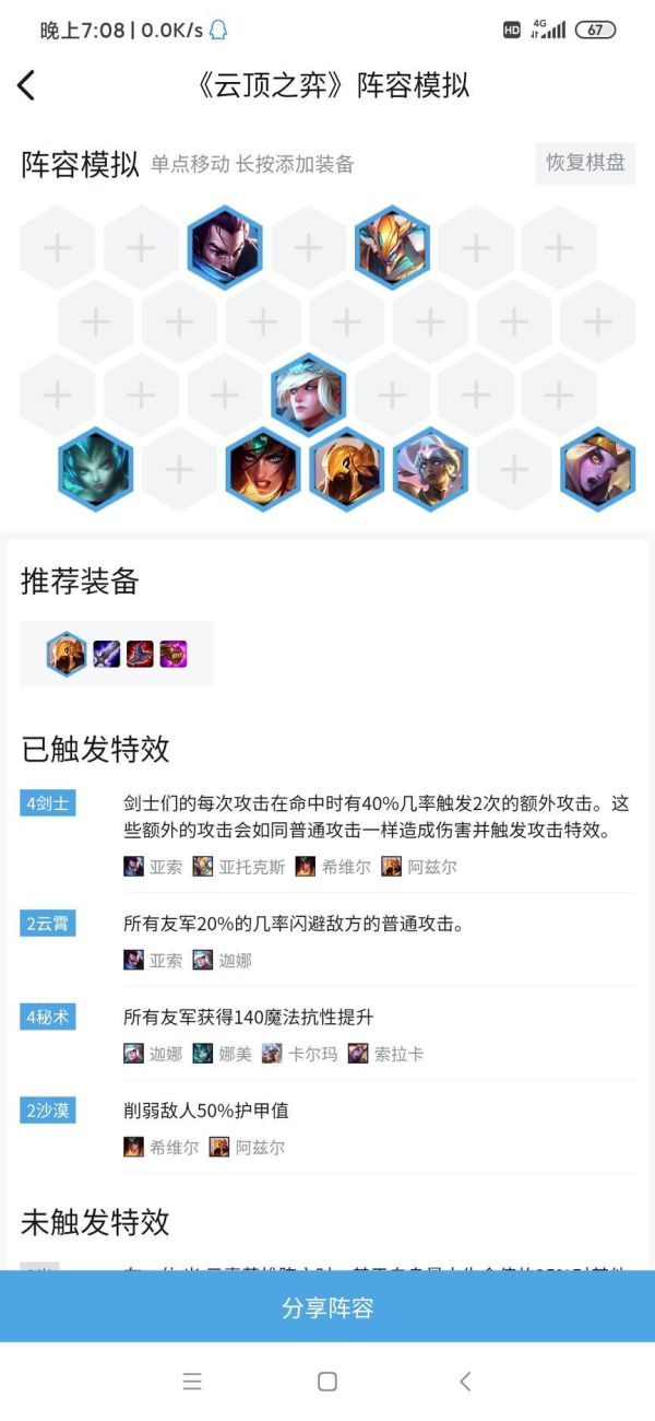 6人口建议2月蚀2沙漠2剑士2秘术2守护过渡(扇子妈,太阳妈,轮子妈,沙皇,狗头,奶妈),有2星亚索剑魔风女可以换双风4剑2秘。7人口挂质量单卡,最后拉8补4秘。