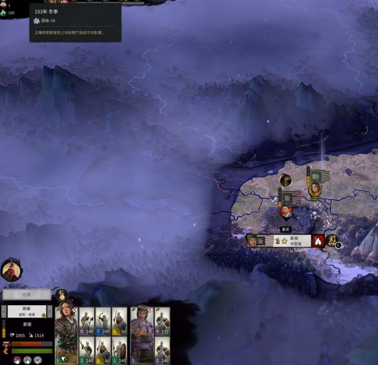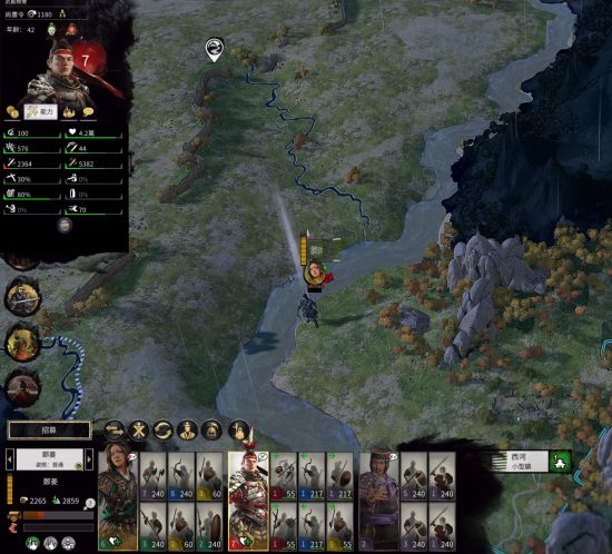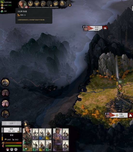 由于连打数战,这时该回家补员了,招几队兵(推荐枪+两队骑兵)休养个两三回合,10回合时往下出兵河东。