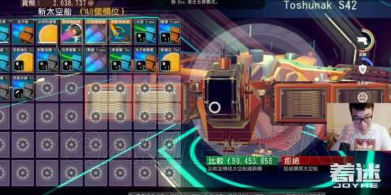 当然,如果你觉得上面那个43个栏位的飞船已经是非常的大了,那么你应该看看下面这张游戏截图了,同样是价值8000万货币飞船,栏位的数量达到了48个,实在是太给力了。
