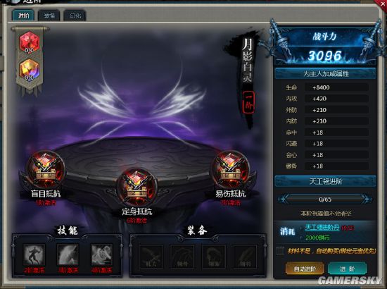(3)翅膀技能一共三个,翅膀的阶数越高,可以习得的技能越多
