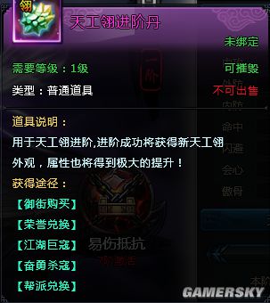 (2) 翅膀进阶丹允许使用元宝以及绑元在御街进行购买,并且可使用荣誉兑换,参加江湖巨寇等活动获得。