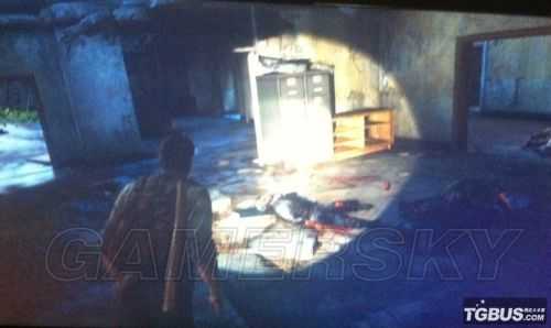 出来后遇到卡车过不去,在左边的房间里有3个感染者,潜行杀死不用浪费物品了。再把里面的柜子推出来爬上卡车。过去后在卡车车箱内搜到一些物品。