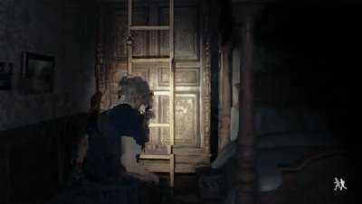 前往阁楼的路线:进入二楼房间→检查右侧墙上的挂画→操作摇柄→带着阿什莉爬梯子进入阁楼