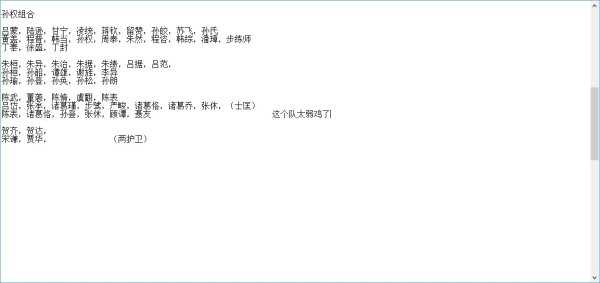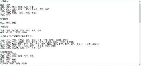 更新下组合,继续深入挖掘了一些不知名的人物……曹操那边还是不怎么去考虑,抗曹志!基本不用他的将