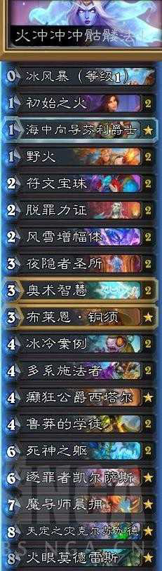 不带火热促销,暴风雪等群解,即使是在面对小鬼术,T7猎这类卡组时,也很少会有需要群解的时候,取而代之的是初始之火。符文宝珠这类小解,这些卡位的替换,给整套卡组的流畅度和舒适度提升了一个档位,整套卡组解场,过牌,下怪一气呵成,波波费用打满。
