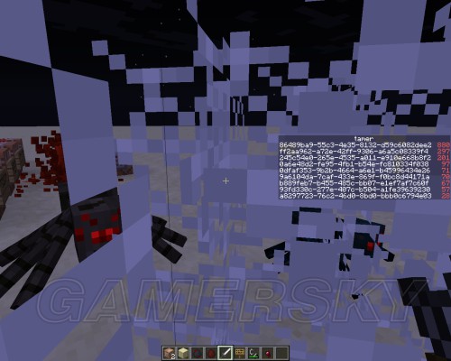 第一个就是给那些SH为1(血量为1-5)的蜘蛛时间无限的速度3,第二个就是让这些蜘蛛给距离为1的玩家瞬间伤害1的效果(知道我怎么死的了吧。。。)。而且一旦应急模式开启如果血量以其他方式回复到5以上后他依然会开启。。。略坑啊。。。再说了如果我这个高频红石一分钟刷15下,那某个血厚的骚年站在那里一秒就受到了15次超过5点血的攻击。。。