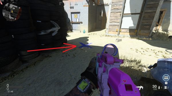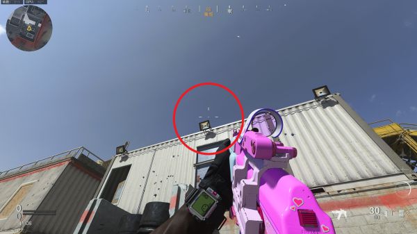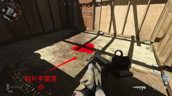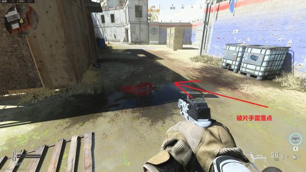 这个定点雷可以准确的命中柱子里面的敌人,落地即爆非常好用,图片中标记的位置是手雷的落点。