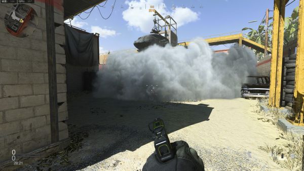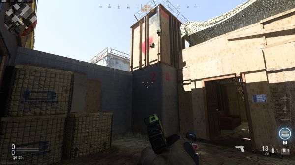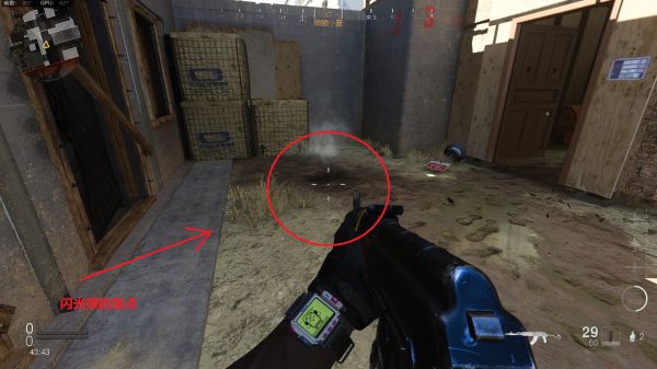 当总部模式的总部刷在蓝桶位置时,简陋小屋里可能会藏有多个敌人,对于藏在简陋小屋里面的敌人只需要把准星向左拉一点丢雷就可以了。