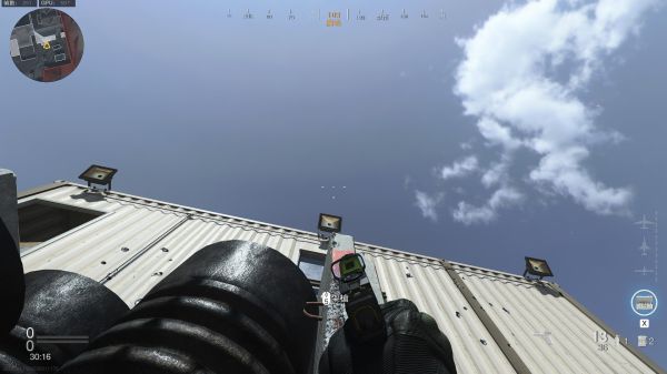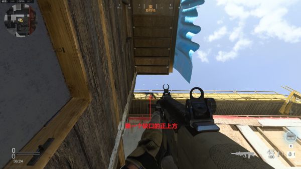 然后准星沿着图片这条线垂直抬头(一点都不能偏),准星抬到于图片差不多(这里需要按照自己对抛物线的感觉)就可以投出破片手雷了。