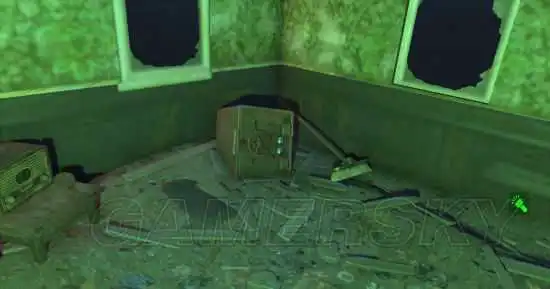 旁边的箱子估计是小船上一起翻下掉入水里的,箱子里有一把钥匙,可以开屋子里的保险箱。