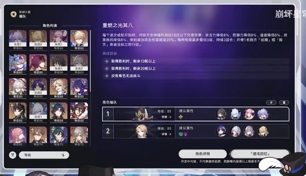 进行下一层挑战时会默认使用上一层的配队,减少配队时间
