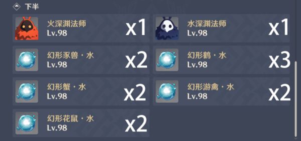 但第二波的火深渊法师使得队伍中至少还需要一位水/冰/雷/风属性的角色进行快速破盾。配队时需要注意。
