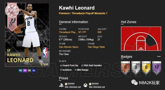 《NBA2K18》粉钻科怀伦纳德作为游戏末期推出的一张粉卡,那么这张卡数据如何?有哪些徽章呢?具体好不好用呢?下面就来看看《NBA2K18》粉钻科怀伦纳德数据评测吧!