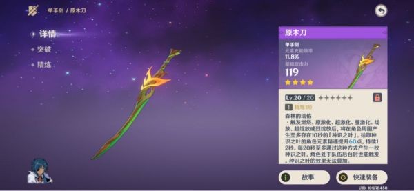 白嫖的原木刀只要你开图开到须弥了 白送一把 只需要精1即可 4星武器白值最高 还有充能 最适合班尼特的4星武器 没有之一