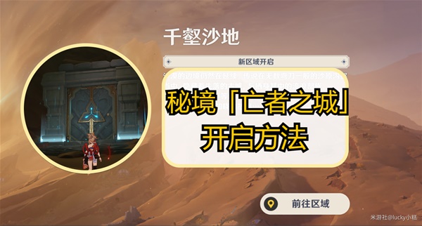 《原神》3.4版本千壑沙地有两个新秘境,下面为大家带来由“lucky小糕”分享的《原神》3.4新秘境亡者之城开启方法,一起来看看吧。