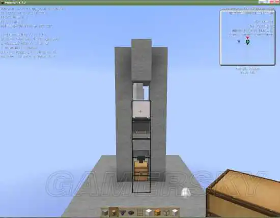 材料:活塞x1水x1红石火把x1方块若干按钮x1红石x6(以上)