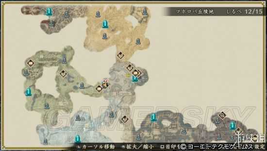 从上图也可以看到实际的地图是很大,图中蓝色的传送石是据点内的可以提供传送功能,而小型的结界跳石只能单向回