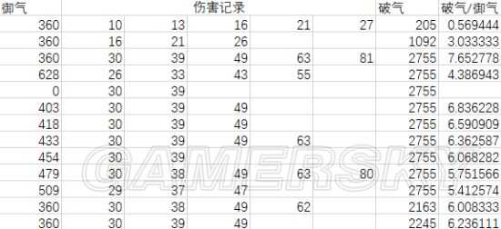 由于破绽会导致伤害提升,而琴不会打出破绽,所以平A的猜想测试我用的是琴。每一次测试记录的数据都是打光对方守御值再记录,因为打完守御值会导致对方的防具提供的护体/御气数值减半,对方自身护体真气提供的护体/御气不变。