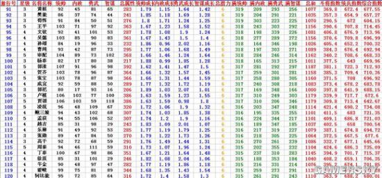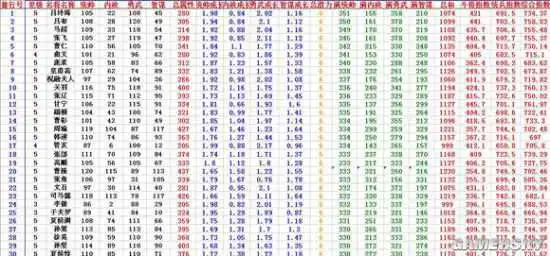 计算结果已经为初始属性加上品质50点(固定50点计算)再加潜力*99即满级的属性排行。少部分可能存在1点属性左右的偏差,对整体排行而言基本上没什么影响。