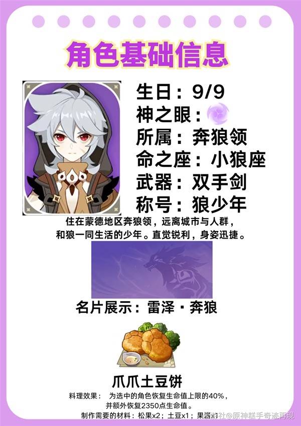本篇攻略从角色基本信息、角色培养推荐(包括圣遗物选择和主词条/副词条推荐、武器推荐、角色关键命之座推荐、角色天赋升级优先级推荐等四个版块)、角色配队推荐三个方面为大家带来详细的介绍~