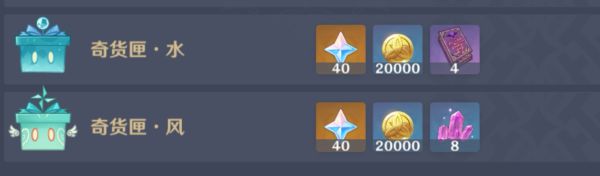 水奇货匣:40原石+20000摩拉+4大英雄的经验书