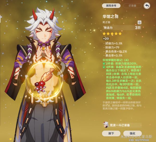 这个转化效果会锁防御力面板。因此华馆和白影剑这种需要叠层的装备,需要提前触发才能吃满。开启大招普通攻击的第1和第3段,命中敌人会分别获得一层BUFF。然后通常状态的第2和第4下可以获得buff互补。因此开启大招,每一下都能叠层。注意:大招存在期间不能切人不然就会消失(和女仆大招不一样)