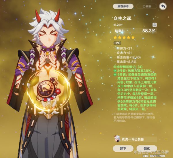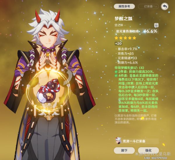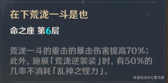 总结:六命一斗是我觉得性价比超高的一位角色,伤害提升明显,嘎嘎猛,零命一斗的话也不错伤害也相当可观,缺点就是纯岩队,元素盾比较难破的一个点。