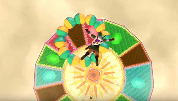 ③穿过圆环并躲开气球之后,将角色拉到屏幕中心来。这样做有利于提前找准下一个圆环的位置,而且还能更清楚地感受到轮盘的旋转速度。
