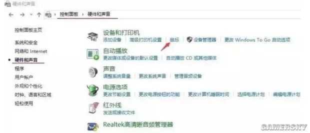 打开控制面板-硬件和声音-鼠标。