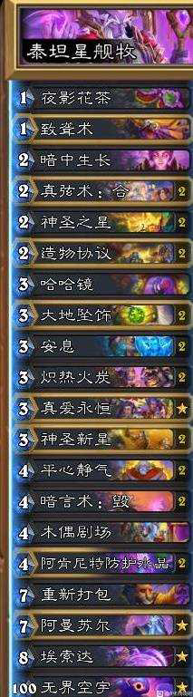 《炉石传说》深暗领域版本可以让玩家运营星舰来获得大身材随从,并且牧师的职业泰坦卡阿曼苏尔也是一张非常强的卡牌。下面请看由“十六十六呀”带来的《炉石传说》星舰泰坦牧卡组分享,希望对大家有用。