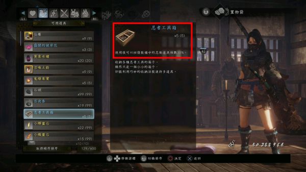 使用忍者工具箱可以恢复已经使用过的忍术道具的量最多带5个,所以仁王有1+3(4)+5条命,算上仙药,以及养生,活源符以及不消耗仙药和阴阳,忍术的词条只会更多。