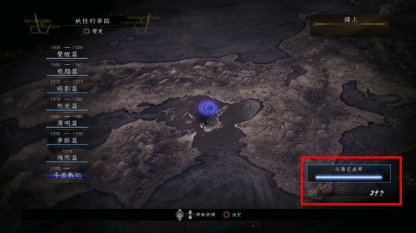 一周目通关之后,通过大地图查看任务完成进度,一个进度满了就会解锁新篇章,周目越高,精华就越多,装备和素材就越好,熟练度就越容易刷。