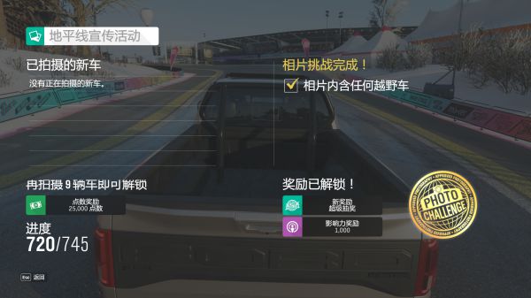 拍摄任意越野车的相片,注意筛选“越野车”类别的才是,任意地点都能完成。
