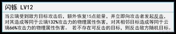 云璃是「五星物理毁灭拉仇恨反击输出」角色,可以看作【复仇反击】的设定,吸引敌人攻击云璃,然后受到攻击后再做出回击的追加攻击的一个设定。并且有二段大招能量,可以连续使用两次大招造成更大的追加攻击伤害,是个非常强力的输出。