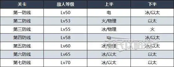 第二层下半会出现弱点为以太的敌人,由于目前以太属性角色较少,没有朱鸢的情况下需要使用其他属性的输出角色,本期其他层会有弱电的敌人,如果养了安东的话也可以在下半使用。但是要注意下半的怪物抗性为冰,不要选择冰系输出。