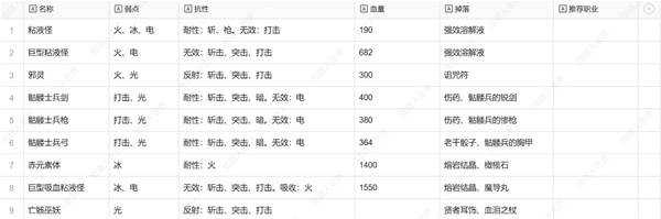 想知道全敌人弱点与掉落物的小伙伴请看这篇: