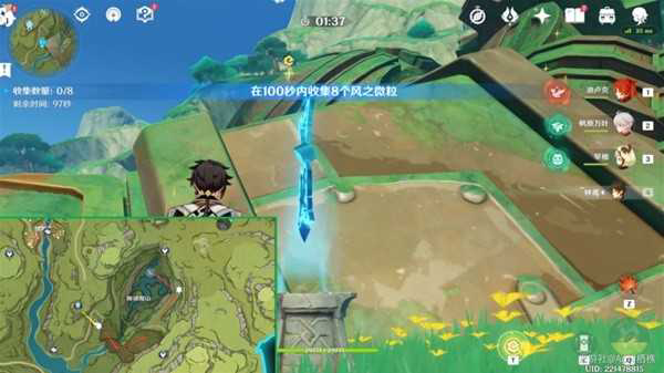 到达挑战位置后,开启挑战,在100秒内收集8个风之微粒,一直使用四叶印即可收集齐。