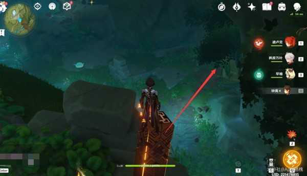 开完宝箱后往东北方向看,下方有几棵不知名的树,飞往树下面;