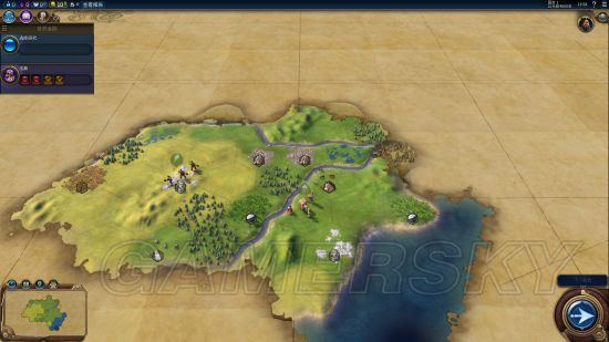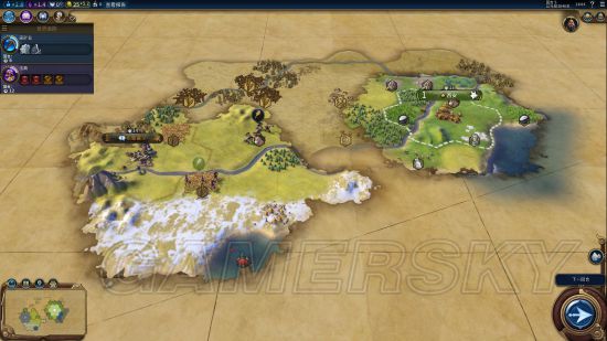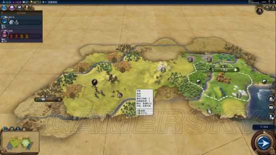 左边依旧没有沙漠。移民因为直接坐森林的话会损失很多产能,准备过河坐城。